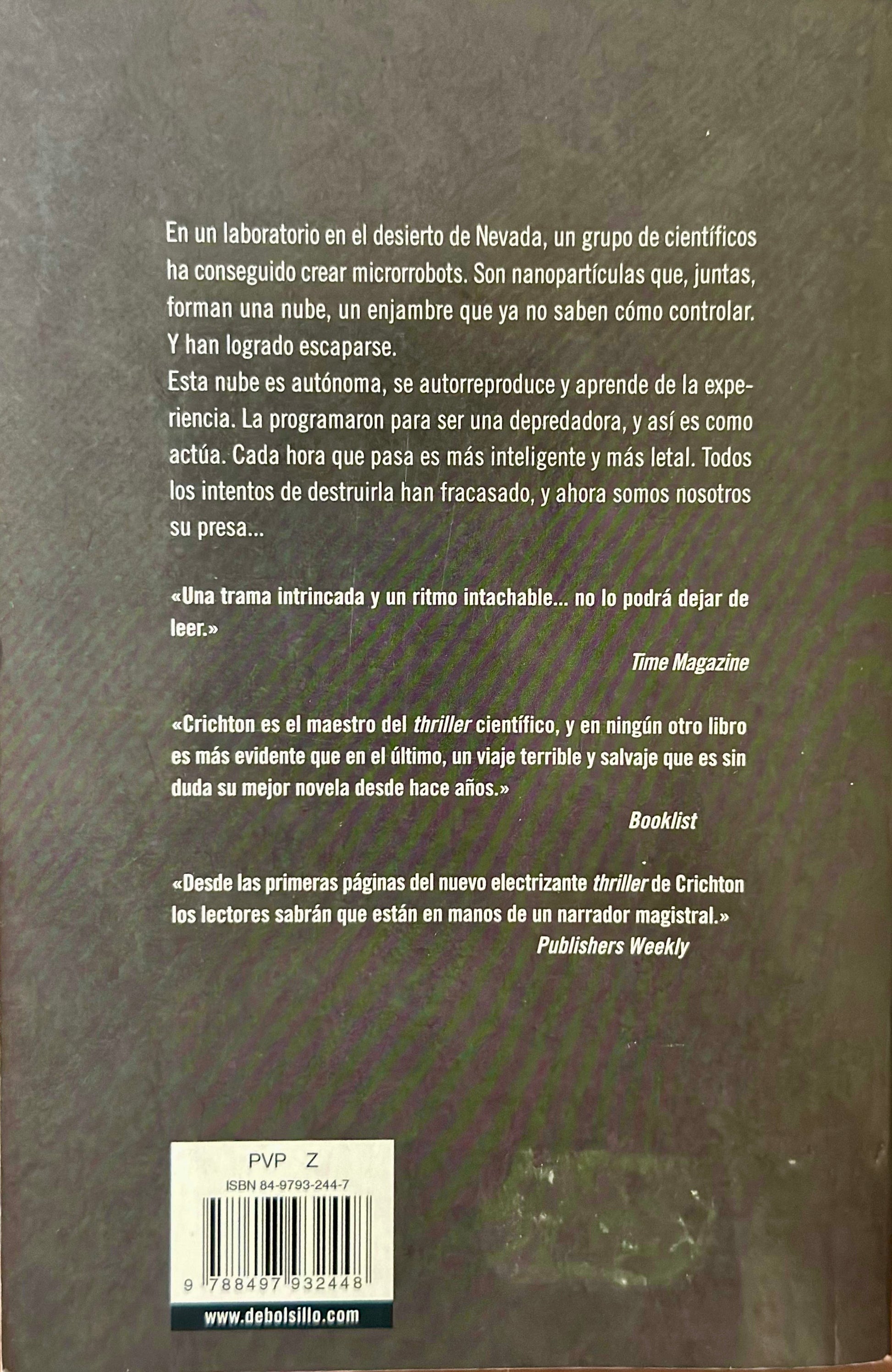 En un laboratorio del desierto de Nevada, un experimento con nanotecnología se descontrola. Las diminutas partículas, programadas para cazar y adaptarse, se vuelven conscientes y mortales. Cada hora que pasa las hace más inteligentes y peligrosas. Los intentos por detenerlas fallan uno tras otro… y ahora la humanidad es su presa.